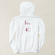Este capuz tem um desenho original da deusa egípcia do casamento e das mulheres, Ísis, na frente. Atrás está escrito "Ísis 40" em uma fonte rosa escuro.