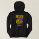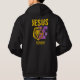 Na moda Christian JESUS O LÍÃO DA TRIBO DO capuz JUDAH com TEXTO PERSONALIZÁVEL. O bolso da frente e o design mostram a silhueta de leão em ouro com tipografia lilás/ouro em negrito. Isso faz uma declaração ousada para crentes fortes. O texto do bolso frontal lê O NOME DE JESUS CADA KNEE DEVE ARCO e o texto posterior lê JESUS TEM TRIUNPHED. Disponível em outros estilos e presentes correspondentes. Ideal para declarações de Natal e Páscoa.