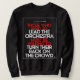 Camiseta velha e motivacional, com a poderosa citação "Aqueles que querem liderar a orquestra devem estar dispostos a virar as costas para a multidão." Perfeito para líderes, visionários, e qualquer um que ousa se destacar e inspirar.