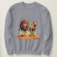 Vibrant comic-style duo of a roaring lion and nimble llama racing in bold colours, perfect for energetic streetwear and youth apparel, capturing motion and wild teamwork.