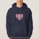 Esta camisola encapuzada apresenta um coração calmo, legal e colecionado cor-de-rosa com um centro lavado em branco contendo as letras maiúsculas e em negrito ME, a abreviação oficial para Maine, o estado do pinheiro.