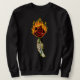 Moletom Mão de Esqueleto Com Flor de Rosa em Chamas