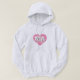 Esta camisola de capuz apresenta um coração calmo, legal e colecionado cor-de-rosa com um centro branco lavado contendo as MÃES em negrito, branco, maiúsculas, a abreviação oficial para Massachusetts, o estado da baía.