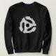 Um adaptador de inserção de gravação preto e branco de 45 rpm, confuso, para amantes do rock and roll antigo.