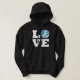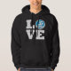 Um suéter de capuz divertida para nadadores, treinadores, equipes e fãs de natação e mergulho, com o LOVE impresso em negrito texto branco e um ícone nadador no lugar do O com água de piscina azul de faísca no fundo. Estas são fantásticas para nadadores e treinadores em todos os níveis de competição, desde equipes de natações juvenis através de equipes de segundos graus de varsidade e natações universitárias!