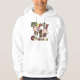Duas vacas em bonés de meia, presentes do Natal, luzes do feriado, bastões de doces, e texto vermelhos que lê de "o Natal Mooey" em t-shirt do feriado, canecas, cartões, etiquetas, sacolas, pulsos de disparo de parede, caixas da lembrança, ornamento, chaveiro, e outros roupa e presentes bonitos do feriado do tema da vaca.