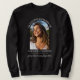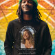 Camisola preta personalizada, memorial de funeral, com uma grande fotografia em arco do seu ente querido perdido, o texto "na memória amorosa", o nome, as datas de nascimento/morte e a lembrança que dizia "desaparecido mas nunca esquecido".