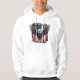 Mostre seu orgulho americano com esta design ousada e patriótica apresentando uma águia careca voando contra um pano de fundo da bandeira americana.