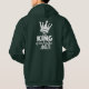 Grande coroa branca com texto "REI" e "do pota_er" (POTAGER em inglês: jardim vegetal) com os pruners para G + 60 e Tomates (por 60 anos) no fundo transparente. Design no hoddie verde escuro.