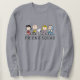 Veja Lucy, Charlie Brown, Snoopy, Sally e Linus sentados juntos.