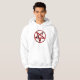 Pentagrama vermelho, invertido, texturizado em círculo, sobre fundo branco. Símbolo oculto. 666