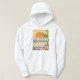 o Poster de viagens de praia kuwait de um cenário quente do sol do meio oriental do deserto, à noite, há uma palmeira alta e bonita em primeiro plano.