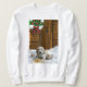 Linda arte de Natal de Goldendoodle. O filhote de Goldendoodle espera na varanda coberta de neve para que Papais noeis cheguem, guardando cookies de Papais noeis. Presentes de Natal maravilhosos, cartões de Natal, postagem, roupa e muito mais.