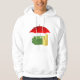 Adicione uma camada de conforto e significado ao seu guarda-roupa, com o capuz deste homem a mostrar uma poderosa design de guarda-chuva vermelha sobre pilhas de dinheiro e moedas de ouro. Excelente para empresários, profissionais financeiros ou qualquer pessoa que valorize designs simbólicos que representam força econômica e proteção da poupança. Um casulo versátil para saídas casuais, tempo de inatividade do escritório ou visto diário com uma mensagem de segurança financeira.