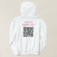 Elevem a sua proposta com um toque de humor através da nossa camisa de camisola branca de capuz "Wanna Casado Me?". Personalize o texto e o código QR no verso para levar ao seu momento especial no Instagram, TikTok, Facebook ou muito mais. Ideal para gestos românticos, propostas, casamentos e ocasiões especiais. Uma adição exclusiva à sua coleção ou uma ideia memorável de presente.