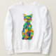 Uma pintura de um gato arco-íris. O gato tem padrões como um inferno tortosso, apenas em muito mais cores. Adequado apenas para roupas leves.