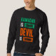 Bold distressed typography design featuring the powerful phrase “Ramadan Is Coming Devil Is Running” in vibrant green, orange, and white on a dark background. The stacked layout and grunge texture create a strong street-style Islamic statement. A motivational Ramadan quote that captures the spiritual strength and energy of the holy month with modern urban flair.