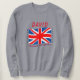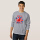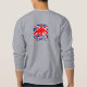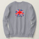 Este vestuário de qualidade tem um gráfico na frente da bandeira do Reino Unido (bandeira da União) com as palavras 'Rainha &' e 'País' em ambos os lados e 'Reino Unido' abaixo com um lugar para o seu nome acima. Na parte traseira está a bandeira do Reino Unido com um lugar para o seu nome. Todas as palavras podem ser alteradas para satisfazer as suas próprias necessidades, exceto "Reino Unido", que faz parte do gráfico de bandeira.