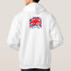 Este vestuário de qualidade tem um gráfico na frente da bandeira do Reino Unido (bandeira da União) com as palavras 'Rainha &' e 'País' em ambos os lados e 'Reino Unido' abaixo com um lugar para o seu nome acima. Na parte traseira está a bandeira do Reino Unido com um lugar para o seu nome. Todas as palavras podem ser alteradas para satisfazer as suas próprias necessidades, exceto "Reino Unido", que faz parte do gráfico de bandeira.