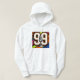 This white hoodie features a street graffiti + retro hip-hop style: the chest prominently displays the “99” number as the base, overlaid with retro microphone elements, paired with colorful graffiti strokes and contrasting textures. The vibrant colors and street vibe fully enhance its retro hip-hop appeal. Made from a soft, skin-friendly cotton blend, the hoodie design includes a hood and kangaroo pocket for both comfort and practicality. The graffiti strokes and retro microphone elements perfectly capture the street culture and hip-hop party vibe, making it easy to create a unique look for daily outings, music festivals, or trendy gatherings.