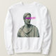 A classical Roman emperor statue reimagined in vaporwave style. The marble bust is adorned with bold, horizontal pink glitch lines over the eyes, creating a fusion of ancient stoicism and futuristic rebellion. Perfect for retro-futurist fashion, digital art, or statement streetwear.