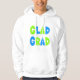 Multicolores em camisetas, camisas, polos, tanques e chapéus de graduação verde limão e azuis para formandos de segundos graus, universidades ou universidades.