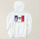 Em um hoodie 3X branco… na parte de trás do hoodie nós temos 2 bandeiras representar as ilhas do americano & Samoa Ocidental, sentando-se verticalmente. Igualmente no meio, a palavra SAMOA é em cima dos ombros de um homem samoano forte. E debaixo das 3 imagens são as palavras, "melhor dos ambos mundo."