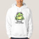 Um sapo de desenho verde e bonito com a mensagem "Beije-me! Eu sou um príncipe"