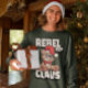 Presente de Natal Sarcástico Festivo Foliday Sweatshirt "Rebel Without a Claus" para homens
