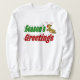 Docinho com saudações da estação em texto verde e vermelho 3D e uma rena. Sweatshirt disponível em várias cores.