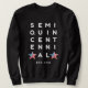 A meaningful gift for history lovers, educators, veterans, families, and proud Americans marking this once-in-a-lifetime milestone. The design shows bold white typography of the word SEMI QUINCENTENNIAL spread over five lines with two USA stars on the last line. There is CUSTOMIZABLE TEXT which currently reads EST. 1776, which you can PERSONALIZE with your name, family, or other line of text. Also available in white.