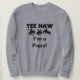 Yee Haw Eu sou um Papa T-shirts, canecas, cartões, adesivos, botões de anúncio, keepsakes de papa, e outros presentes de papa com um cavalo de fivela e design de texto preto ou branco. Estes papa roupa e presentes são perfeitos para avós pela primeira vez ou papas temperados de uma nova chegada!