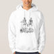 This premium unisex white hoodie features a unique hand-drawn skeleton art design inspired by human anatomy and abstract sketch illustration. The detailed black-and-white artwork shows two human skeletal figures standing on a rugged ground, symbolizing life, mortality, and artistic expression.