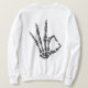 This premium unisex sweatshirt features a striking hand-drawn skeleton art design inspired by human anatomy and abstract sketch illustration. The detailed black-and-white artwork showcases two skeletal figures standing on rugged ground, symbolizing life, structure, and artistic depth.