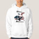 A icônica ascensão de águia careca acima do mapa das estrelas e listras famosas, América. Uma mensagem inspiradora maravilhosa nestes tempos.
