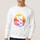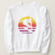 design de surf legal com Surfer com fundo de pôr do sol no estilo retrô.