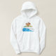 Um buldogue estilo cartoon cavalgando uma prancha de surfe em uma onda. Esta design parece realmente eficaz neste Mens Hoodie