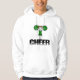 T-shirt, canecas, hoodies, cartões, sacolas, ímãs, etiquetas dos aplausos, chaveiro, e mais Cheerleading com um cheerleader em um uniforme verde e em uns poms verdes do pom.