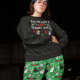 Esta camisola gráfica maravilhosamente assustadora oferece um estilo de gótico girando sobre os tradicionais motivos natalinos com flocos de neve e formas estelares formadas por ossos de esqueleto brancos, Enfeites de natal em forma de crânio e groselhas ocas, coroas pretas de Natal e árvores e ornamentos e bonecos de neve. Minhas ilustrações estão em verde, cinza, vermelho e branco. Meus gráficos acompanham o slogan TENHA UM PEQUENO NATAL ESTRANHO, soletrado em um crânio branco angustiado e letras em forma de osso.