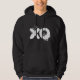 Texto branco do XO é um capuz preto. Legal design negro de capuz para ele. Nova design para namorado. Um capuz negro para o irmão. Vestuário de inverno. Moda dos homens. Roupa masculina. Primavera negro de capuz para ele. Hoodie para namorado. Suéter de moda preto para ele. Texto branco sobre camisas negras.