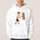 Mantenha-se quente e motivado com o capuz deste homem, com um boxer de desenho animado a bater numa bolsa. Perfeito para atletas, fãs de malhações e qualquer um que desfruta de gráficos esportivos ousados, este capuz é ideal para exercícios, visto casual ou relaxamento no conforto. Uma na moda para mostrar amor por boxe e treinamento.