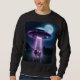 Cena misteriosa de um OVNI levantando uma vaca em um feixe de luz contra o pano de fundo de um céu noturno com uma lua de cheio. Ilustração perfeita para fãs de ficção científica, e histórias fantásticas sobre contato com civilizações extraterrestres.