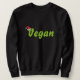 Um design vermelho e verde com a palavra: Vegan, com um chapéu de Natal na primeira letra.