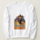 A design de camiseta apresenta uma imagem nostálgica e aventureira: uma carrinha clássica dos anos 70 com uma prancha de surfe amarrada ao seu telhado, combinada com a legenda "Road Trip." Esta design evoca um sentido de liberdade, exploração e o espírito da aventura.