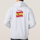 Este vestuário de qualidade tem um gráfico na frente da bandeira espanhola com as palavras "Viva la España" abaixo, com um lugar para o seu nome acima. Na parte de trás está a bandeira espanhola com "Viva la España" abaixo e um lugar para o seu nome acima. Todas as palavras podem ser alteradas para satisfazer as suas próprias necessidades, exceto "Viva la España", na frente, que faz parte do gráfico de bandeira.