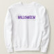 A bold witch broom flies above soft purple Halloween lettering in round typography. This design blends classic symbols with stylish composition for spooky season fans.
