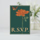 Uma bela e simples carta verde RSVP para complementar seu papel de carta de casamento, seja Boho, chic rústico ou moderno. O RSVP verde profundo é embelezado por um Dahlia laranja, solteiro perfeitamente queimada, borboleta monarca e borda dourada. O inverso tem o texto tradicional de RSVP junto com um código de QR conveniente e econômico e um modelo para o seu site de casamento. Três maneiras de seus convidados responderem com facilidade ao seu convite de casamento.