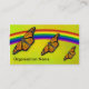 A parte dianteira do cartão inclui seis campos editáveis do texto. Um fundo amarelo atrativo do inclinação é ajustado fora com um arco-íris alegre e uma borboleta de monarca no médio-vôo. A parte traseira um único campo editável do texto, e um motiff atrativo do arco-íris e da borboleta de monarca com três butterflys no médio-vôo, asending (da parte inferior direita para a esquerda) em tamanho e na posição.