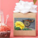Monarca no adesivo retangular amarelo da Zinnia