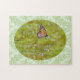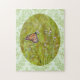 Trabalho de arte digital original com uma amostra de tecido de parede artístico antigo (do dominio público e retrabalhado em forma verde) e minha fotografia original de uma borboleta Monarca sobre flores silvestres processada em estilo artístico ilustrado em forma oval centrada no padrão. Este quebra-cabeça é de 11" x 14" na categoria "desafiador" com 252 peças, mas você pode aumentar ou diminuir conforme desejar. Esses quebra-cabeça são bem feitos de uma placa resistente montada na placa. Eles são impressos em cores vivas e vêm em uma caixa de presentes personalizada com o design de imagem impresso no topo! Feito nos EUA e estes fazem presentes de excelente para crianças e adultos.